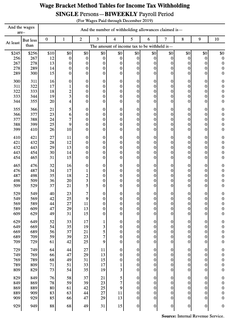Federal Tax Withholding Tables Biweekly
