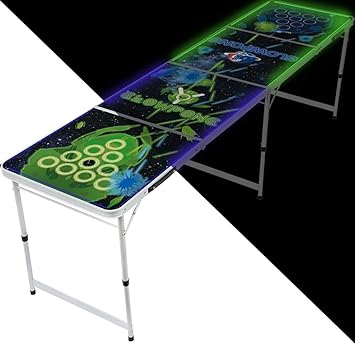 With standout features like Glow-in-the-dark cup holders and built in light show youll be able to bring the party to you. Tired of one use game sets LED PONG comes with high quality LED lights that will last for a minimum of 24 hours. 8-Foot Professional Beer Pong Table Pink Zebra Graphic.